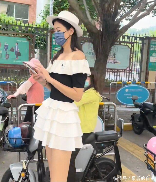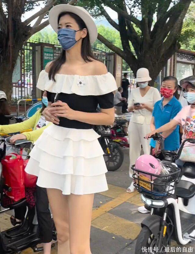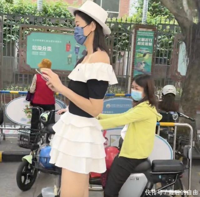 视频当天,李女士像往常安排那样到孩子的学校门口等待,或许是天气炎热的原因,她选择了一字肩连衣裙来搭配,头上再戴上一顶纯白的遮阳帽。在连衣裙的衬托下,李女士高挑的身材被展现得淋漓尽致,仅仅是站在那里便成为了那群之中的焦点。而在李女士等候期间,身后一名正在电动车上等待的妇女直勾勾地盯着李女士的大腿,从她的眼睛里不难看出羡慕之情。这位妇女与李女士的年纪大致相仿,同是已为人母的两人,一个穿着朴素、皮肤粗糙,另一个则犹如名模一般,两人的形象形成了鲜明对比。
